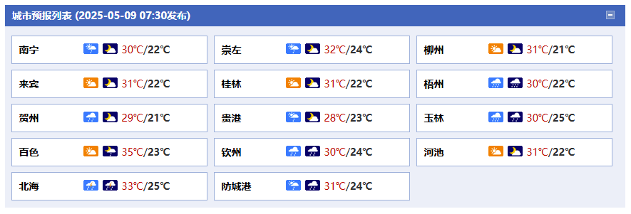 廣西氣象臺(tái)9日05時(shí)發(fā)布預(yù)報(bào):