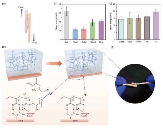 (1) 優(yōu)異的組織粘附性:PGS水凝膠對豬皮的剪切強度高達64kPa,遠高于其他生物組織;