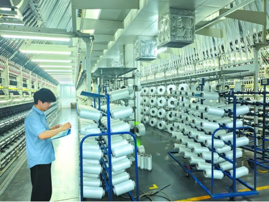 4月24日,筆者走進(jìn)位于高坪區(qū)都京街道的四川美華新材料有限公司,眼前景象令人耳目一新:各生產(chǎn)線有序運(yùn)轉(zhuǎn),后紡智慧車(chē)間大屏上,產(chǎn)量、能耗、質(zhì)檢等數(shù)據(jù)一目了然。經(jīng)過(guò)牽伸、加彈、卷繞等工序后,原材料變成錦綸紡絲,如瀑布般傾瀉而下。