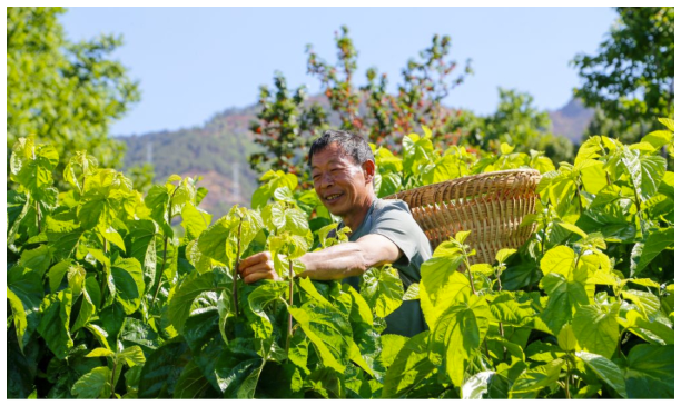 蠶農(nóng)采摘桑葉(2025年5月7日攝)
