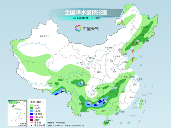 未來三天(5月14日至16日),南方降雨將明顯增多、增強,部分地區(qū)有暴雨并伴有強對流天氣,需注意防范次生災(zāi)害的發(fā)生。氣溫方面,今明天,北方高溫暫時消退,16日以后高溫還會再度發(fā)展,需注意防暑。