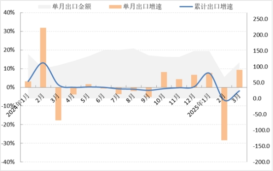 圖3 2025年1-3月我國服裝及衣著附件出口情況