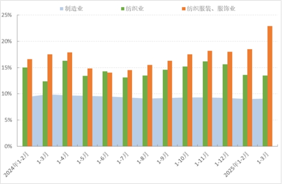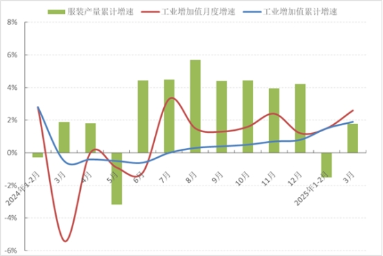 圖1 2025年1-3月服裝行業(yè)生產(chǎn)增速情況