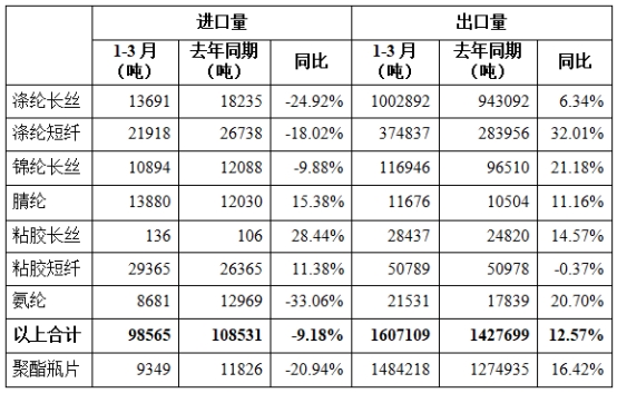 表2 2025年1-3月化纖主要產(chǎn)品進(jìn)出口情況資料
