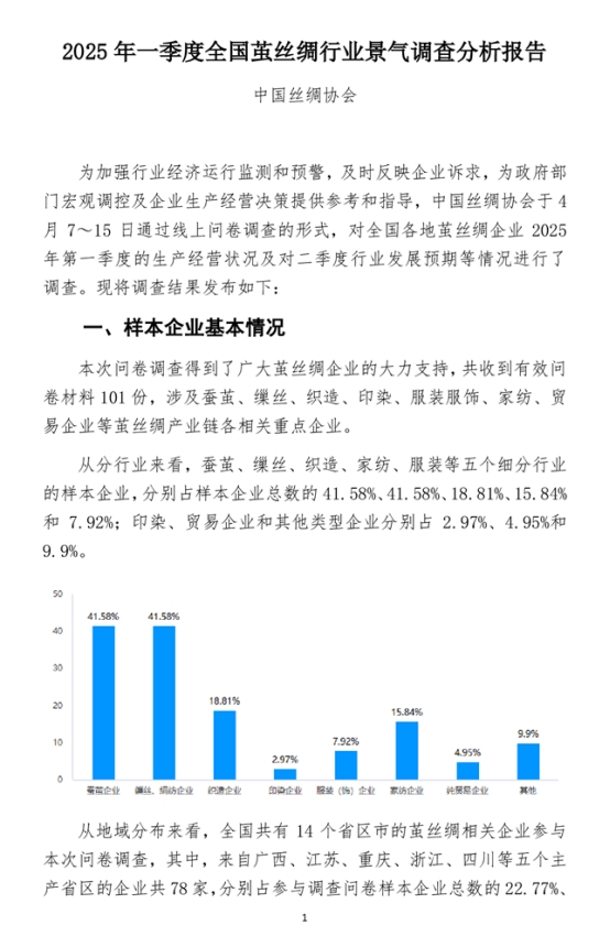 行業(yè)報(bào)告丨2025年一季度全國繭絲綢行業(yè)景氣調(diào)查分析報(bào)告