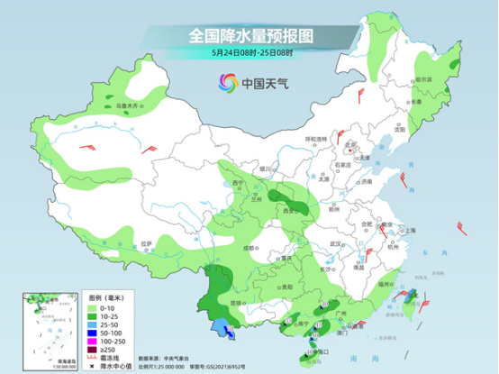 明天,南方本次較強(qiáng)降雨過(guò)程趨于結(jié)束,預(yù)計(jì),寧夏南部、陜西中部、云南西部、廣西西南部和東部、廣東西部、海南島北部等地部分地區(qū)有中到大雨,其中,云南西南部部分地區(qū)有暴雨。