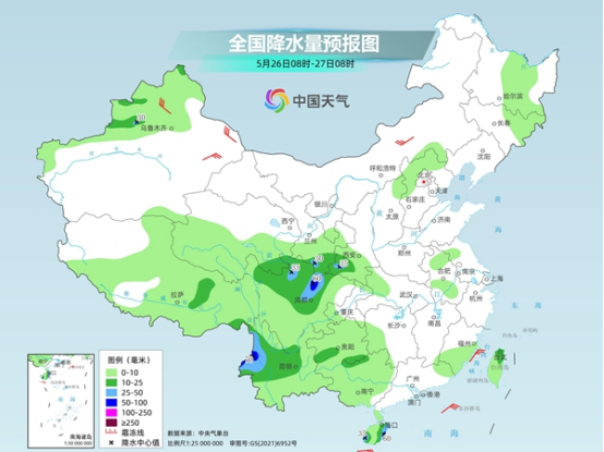 中央氣象臺預(yù)計,今天,新疆伊犁河谷、青海東南部、甘肅東部、陜西西南部、四川中北部、貴州南部、云南中西部、海南島、臺灣島北部等地部分地區(qū)有中到大雨,其中,四川盆地西北部、云南西部、海南島東部等地部分地區(qū)有暴雨。