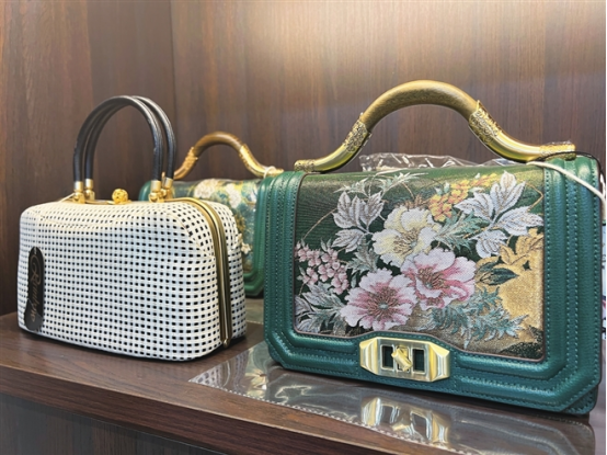2017年,蔡霞明與國際著名服裝設(shè)計(jì)師勞倫斯許合作的30多套蘇繡服裝登上巴黎時(shí)裝周;2019年,蔡霞明與笠軒華服合作,攜70余件緙絲作品再登巴黎時(shí)裝周。蔡霞明緙絲藝術(shù)館成立后,為了更好地推動(dòng)緙絲走進(jìn)日常生活,蔡霞明結(jié)合年輕人的喜好,設(shè)計(jì)了緙絲手包、緙絲掛墜、緙絲耳飾等緙絲生活衍生品。同時(shí),她還將緙絲技藝進(jìn)行延伸,向收藏品、工藝品方向發(fā)展,推出了緙絲宮扇、緙絲臺(tái)屏等特色產(chǎn)品。