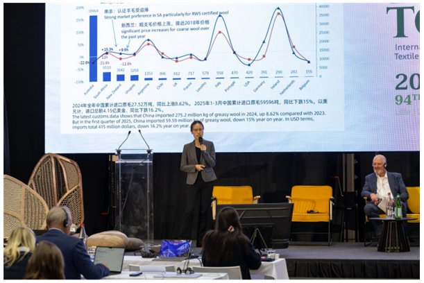 南京羊毛市場主任蔣雅麗向全球代表們分享了中國羊毛供需形勢。