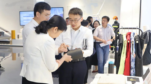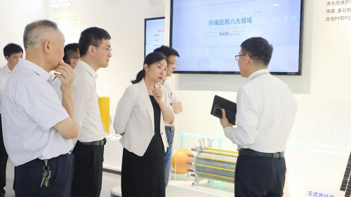 調(diào)研中,董琤一行實地參觀了創(chuàng)新中心展廳,詳細(xì)了解中心在纖維材料創(chuàng)新及綠色低碳方面的技術(shù)研發(fā)、專利布局及成果轉(zhuǎn)化情況。