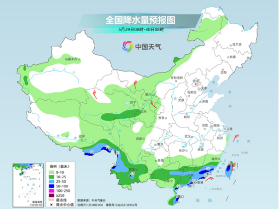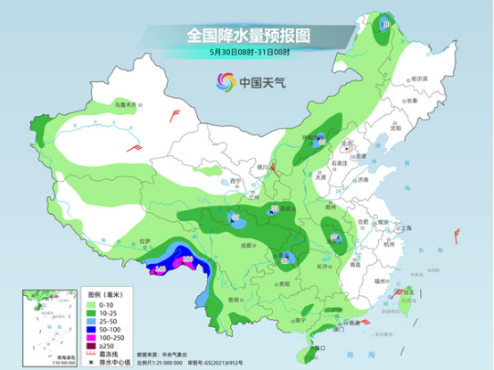 后天至6月2日,中東部新一輪降水過(guò)程來(lái)襲,南方多地將現(xiàn)較強(qiáng)降雨,降雨核心區(qū)域較此次將有所北抬,或集中在長(zhǎng)江中下游沿線(xiàn)以及江南北部等地。其中后天,西北地區(qū)東南部、黃淮西部、江淮、江漢、江南北部、川西高原北部、西藏東南部、云南西部等地部分地區(qū)有中到大雨,其中,西藏東南部、云南西北部、湖北東部、安徽西南部、河南東南部、江西北部等地部分地區(qū)有暴雨或大暴雨。