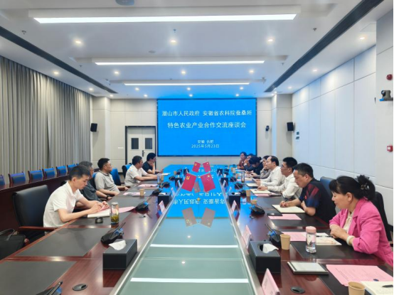 5月23日下午,安徽省潛山市副市長(zhǎng)戴海兵率農(nóng)業(yè)農(nóng)村局局長(zhǎng)汪學(xué)軍、潛山市槎水鎮(zhèn)黨委書(shū)記馮耀廷一行到省農(nóng)業(yè)科學(xué)院蠶桑研究所調(diào)研交流,所長(zhǎng)鐘金玲主持座談會(huì),副所長(zhǎng)汪泰初及相關(guān)研究室負(fù)責(zé)人參會(huì)。