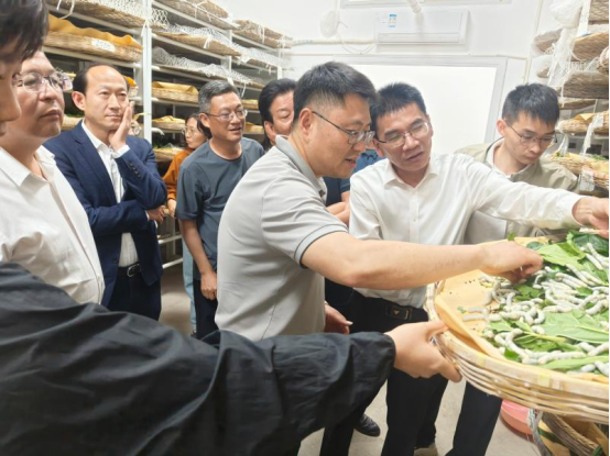 會(huì)上,雙方重點(diǎn)圍繞項(xiàng)目申報(bào)、成果轉(zhuǎn)化、平臺(tái)建設(shè)等問(wèn)題,深入探討了推動(dòng)潛山市蠶桑產(chǎn)業(yè)高質(zhì)量發(fā)展的思路和舉措,詳細(xì)謀劃了下一步合作具體方案。會(huì)后,調(diào)研組一行實(shí)地考察了蠶桑研究所家蠶種保育中心、智能化養(yǎng)蠶設(shè)備、人工飼料育實(shí)驗(yàn)室及食藥用菌種質(zhì)資源庫(kù)等科研平臺(tái),詳細(xì)了解相關(guān)設(shè)備運(yùn)行情況。