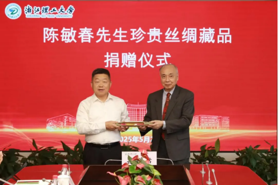 繆魯加向陳敏春先生的慷慨捐贈致以衷心感謝和崇高敬意。他介紹了學校近年來的發(fā)展成就,指出此次捐贈是對學校絲綢博物館建設的有力支持,對學校事業(yè)發(fā)展的積極助力。他高度贊揚了陳敏春先生為家鄉(xiāng)教育、文化、衛(wèi)生事業(yè)慷慨捐贈的善行義舉,希望師生們學習陳敏春先生的愛國主義精神、服務桑梓情懷,與祖國同心、與時代同行,在創(chuàng)新創(chuàng)業(yè)的實踐中成就夢想,為中國式現代化建設貢獻青春力量。