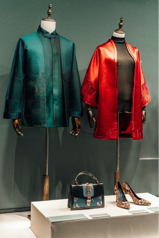 現(xiàn)場,蘇州絲綢博物館副館長朱艷還帶來了一件特別的絲綢作品,它以蘇州絲綢博物館館藏的兩件精美的絲綢服飾為靈感,提取了其中的四合如意云肩,盤扣等元素,并配以豐富的吉祥紋樣。朱艷將這件滿載江南風韻與美好祝福的絲綢,贈送給克州博物館,以此見證兩館之間的友誼與合作。