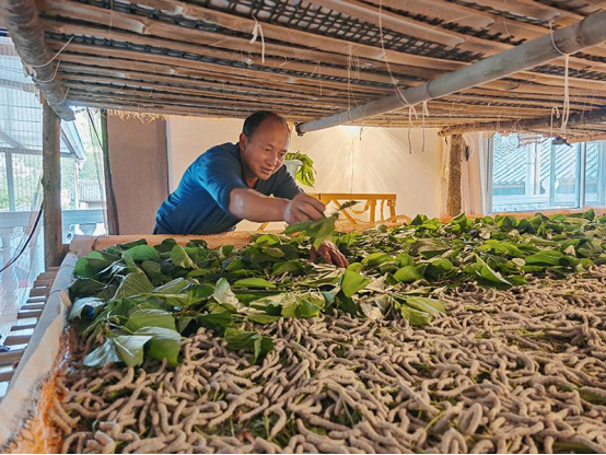 這個(gè)森林覆蓋率達(dá)90.3%的滇西鄉(xiāng)鎮(zhèn),年均溫穩(wěn)定在20℃,是天然的蠶場(chǎng)。三年前,鄉(xiāng)黨委政府將蠶桑定為鄉(xiāng)村振興主導(dǎo)產(chǎn)業(yè),如今已培育出完整產(chǎn)業(yè)鏈。平地村黨總支書(shū)記楊枝良指著新擴(kuò)建的蠶房介紹,去年20多戶(hù)跟著養(yǎng)蠶,戶(hù)均產(chǎn)繭70公斤,每公斤67元的保底價(jià),讓農(nóng)戶(hù)輕輕松松進(jìn)賬七八千元。