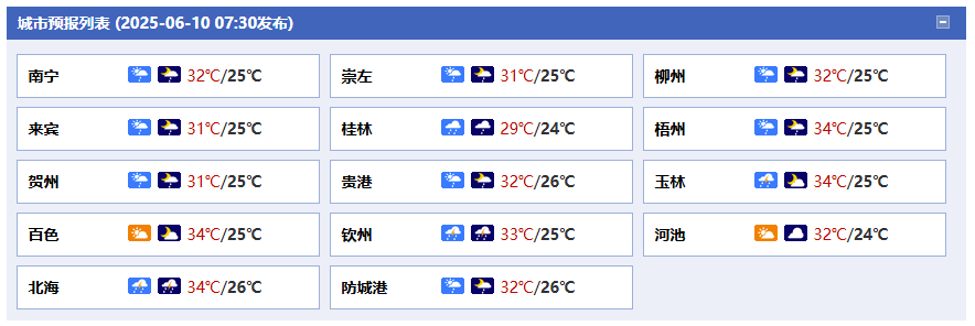 廣西氣象臺(tái)10日05時(shí)發(fā)布預(yù)報(bào):