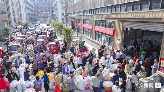 6月5日,在石泉縣池河鎮(zhèn)蠶繭交易智能化收烘中心,蠶農(nóng)排隊售賣今年第一批春繭。