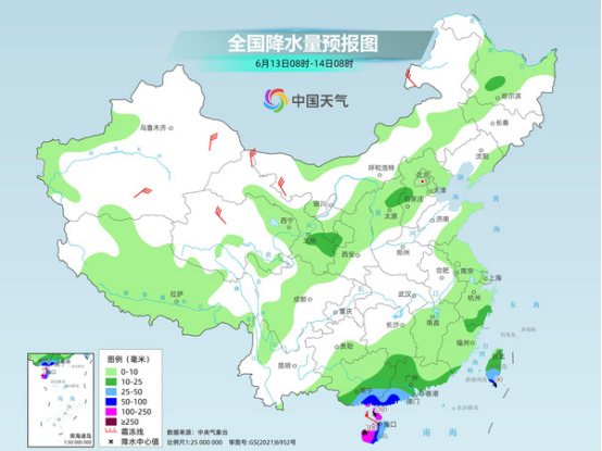 后天,海南島大部、廣東西南部、廣西東南部、臺(tái)灣島南部等地的部分地區(qū)有暴雨到大暴雨,其中海南島西部、雷州半島的局部地區(qū)有特大暴雨;西北地區(qū)東部、華北中部、東北地區(qū)北部等地的部分地區(qū)有中雨。
