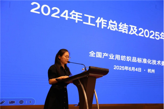 中紡標(biāo)秘書處主任、全國產(chǎn)業(yè)用紡織品標(biāo)準(zhǔn)化技術(shù)委員會秘書長劉飛飛從優(yōu)化完善標(biāo)準(zhǔn)體系、標(biāo)準(zhǔn)制修訂工作、國際標(biāo)準(zhǔn)化工作、相關(guān)項(xiàng)目榮獲科技進(jìn)步獎及經(jīng)費(fèi)情況等方面對2024年標(biāo)委會工作作了總結(jié)報告,并從推動組建成立全國產(chǎn)業(yè)用紡織品標(biāo)委會非織造材料分技術(shù)委員會和過濾分離用紡織材料分技術(shù)委員會、做好標(biāo)準(zhǔn)制修訂項(xiàng)目的立項(xiàng)申報工作、提高國際標(biāo)準(zhǔn)轉(zhuǎn)化率、按期完成標(biāo)準(zhǔn)制修訂任務(wù)、及時做好標(biāo)委會歸口標(biāo)準(zhǔn)的復(fù)審工作、加強(qiáng)標(biāo)準(zhǔn)宣貫推動標(biāo)準(zhǔn)有效實(shí)施、加強(qiáng)標(biāo)委會自身建設(shè)等方面介紹了2025年的工作計劃。