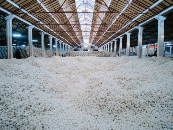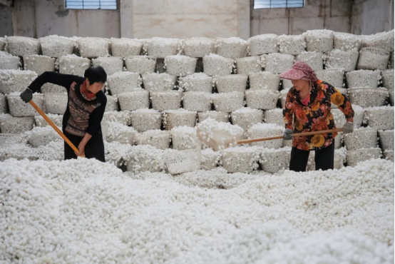 在“中國(guó)繭都”江蘇東臺(tái)富安鎮(zhèn)蔥郁的桑園間,一年中最繁忙的春繭收購(gòu)季已然到來。江蘇富安繭絲綢股份有限公司旗下的富南繭站——全國(guó)最大的蠶繭收烘站內(nèi),售繭的蠶農(nóng)排著長(zhǎng)隊(duì),運(yùn)送蠶繭的車輛接連駛?cè)霃V場(chǎng)。今年,富安鎮(zhèn)12個(gè)繭站同步開秤收購(gòu),鮮繭收購(gòu)量達(dá)900噸,優(yōu)質(zhì)繭每公斤單價(jià)穩(wěn)定在71元以上,豐收的喜悅洋溢在桑園和繭站。
