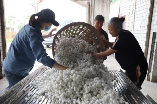 蠶繭站里同樣也是一派繁忙景象,前來售賣蠶繭的村民絡(luò)繹不絕。工作人員熟練地對(duì)蠶繭進(jìn)行抽樣、檢驗(yàn),確保每一批收購的蠶繭都符合標(biāo)準(zhǔn)。
