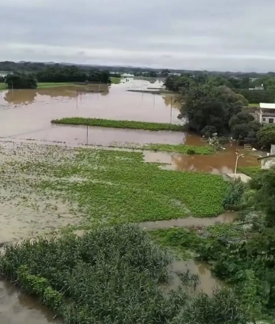 下圖為廣東英德臺(tái)風(fēng)過境后的桑園等田地。