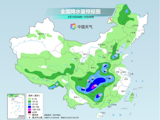 今天(6月18日)至21日,西南地區(qū)至黃淮、江淮一帶大范圍強降雨過程將逐漸鋪展,局地或現(xiàn)大暴雨,上述地區(qū)需加強防范強降雨可能引發(fā)的山體滑坡、泥石流等次生災(zāi)害。隨著降雨增多,中東部高溫范圍縮減,炎熱程度降低,但江南多地高溫天氣待機時間較長,需持續(xù)做好防暑工作。