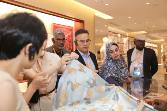 6月18日上午,習(xí)近平經(jīng)濟(jì)思想研究中心帶隊(duì)毛里塔尼亞學(xué)習(xí)中國(guó)市場(chǎng)化經(jīng)濟(jì)發(fā)展經(jīng)驗(yàn)研修班走進(jìn)萬(wàn)事利科創(chuàng)中心,深度考察調(diào)研傳統(tǒng)絲綢產(chǎn)業(yè)在習(xí)近平經(jīng)濟(jì)思想引領(lǐng)下取得的一系列科技創(chuàng)新成果和高質(zhì)量發(fā)展實(shí)踐。此次參訪是習(xí)近平經(jīng)濟(jì)思想國(guó)際傳播的重要實(shí)踐,萬(wàn)事利集團(tuán)也將繼續(xù)以絲綢文化為紐帶,為生動(dòng)講好中國(guó)經(jīng)濟(jì)發(fā)展故事貢獻(xiàn)力量。