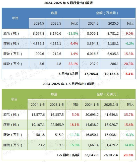 5月羽絨行業(yè)出口增速減緩 進口持續(xù)下滑