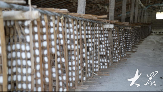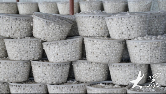 站長聶桂桂身穿工作服,在收購現(xiàn)場穿梭忙碌。她一邊記錄數(shù)據(jù),一邊核驗重量、查看品相、安排堆放。“每年春季,我們放種量達到1100張,單季鮮繭總產(chǎn)量近十萬斤,產(chǎn)值超過350萬元?!彼榻B到。作為當?shù)仡H具特色的桑蠶養(yǎng)殖產(chǎn)業(yè),如今已成為村民增收致富的“金絲產(chǎn)業(yè)”。