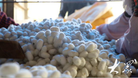 “我們這里的農(nóng)戶技術(shù)高、特別用心?!甭櫣鸸鹫f。為了確保蠶繭品質(zhì),海通絲綢公司在高興鎮(zhèn)構(gòu)建了覆蓋蠶桑全過程的“保姆式”服務(wù)體系:從蠶種發(fā)放、技術(shù)指導到繭品收購,全程無縫銜接?!靶Q農(nóng)只管養(yǎng),我們負責服務(wù)到底。公司實行訂單式收購,也讓蠶農(nóng)吃下了‘定心丸’,有效激發(fā)了大家的養(yǎng)殖積極性?!彼f。