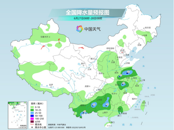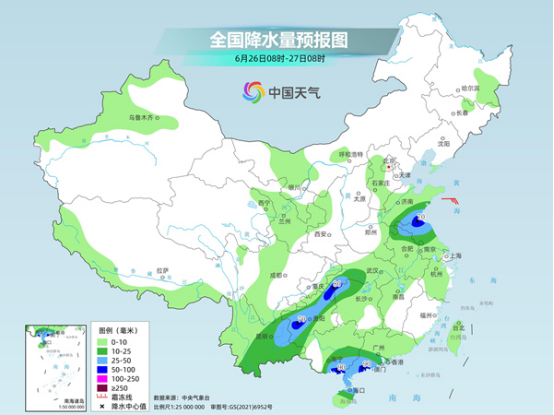 今明兩天(6月25日至26日),江南西部、江漢、黃淮等地部分地區(qū)雨勢較強(qiáng),局地有大暴雨,四川、重慶、貴州、湖北、湖南等地降雨區(qū)域與前期重疊度較高,需注意防范次生災(zāi)害的發(fā)生。同時,華北、東北、新疆等地高溫天氣持續(xù),明天華北平原高溫將明顯減少,長江中下游多地高溫發(fā)展。