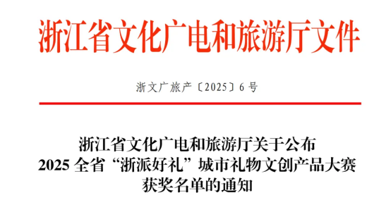 為持續(xù)深化文旅深度融合工程,充分挖掘全省優(yōu)秀文創(chuàng)產(chǎn)品資源,進(jìn)一步釋放文化和旅游消費(fèi)潛力,推動(dòng)城市文化創(chuàng)新與消費(fèi)升級(jí),切實(shí)提升“浙派好禮”品牌知名度,省文化廣電和旅游廳于近期開展了2025全省“浙派好禮”城市禮物文創(chuàng)產(chǎn)品大賽。經(jīng)前期申報(bào)、評(píng)審,共評(píng)出2025全省“浙派好禮”城市禮物文創(chuàng)產(chǎn)品大賽金獎(jiǎng)產(chǎn)品10件、銀獎(jiǎng)產(chǎn)品10件、銅獎(jiǎng)產(chǎn)品10件。