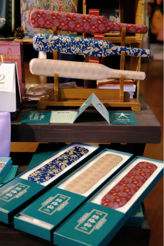 該系列經(jīng)絡(luò)拍一組三件,圖案元素均取材于絲綢文物中的精美紋樣,典雅大方,寓意豐富,分別是菱格瑞花紋、鳥銜花枝紋、團(tuán)鳳雜寶紋。面料選用100%天然桑蠶絲,觸感柔軟,可以直接接觸皮膚拍打,結(jié)實(shí)有彈性,保證力度的同時(shí),避免受傷。