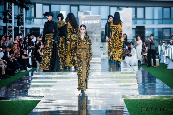 JIWENBO高定大秀以多元設(shè)計(jì)詮釋國(guó)際化時(shí)尚。服飾融合印花、圖騰等元素,借流暢剪裁、色彩碰撞構(gòu)建視覺(jué)張力,將藝術(shù)審美注入時(shí)裝,于T臺(tái)空間傳遞文化交融的設(shè)計(jì)巧思,讓時(shí)尚成為行走的藝術(shù),彰顯獨(dú)特藝術(shù)表達(dá)與潮流先鋒性。