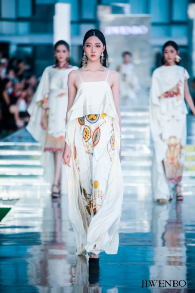 絲企新聞丨JIWENBO&淄博大染坊絲綢高定大秀——《裁月》鷺島綻放