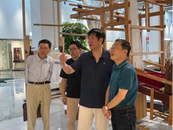 6月29日,湖州市原外事辦副主任、知名傳記作家、文史學(xué)者、兼職教授張建智,北京工業(yè)大學(xué)創(chuàng)意產(chǎn)業(yè)研究所所長、北京大學(xué)文化產(chǎn)業(yè)研究院研究員、博士生導(dǎo)師、教授王國華,華中師范大學(xué)文化與教育建筑研究院院長/美術(shù)學(xué)院副教授、碩士生導(dǎo)師嚴(yán)勝學(xué)等一行來訪“長三角?南潯絲綢文化產(chǎn)業(yè)園”。