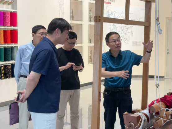 浙江理工大學(xué)湖州研究院常務(wù)專家、湖州綾絹研究所楊健老師熱情接待,引導(dǎo)參觀絲綢文化產(chǎn)業(yè)空間、產(chǎn)業(yè)園1、3樓相關(guān)業(yè)態(tài)和頔南絲韻?真絲產(chǎn)業(yè)園(一期),并介紹了舊館絲綢產(chǎn)業(yè)的歷史和現(xiàn)狀。