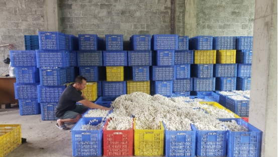 圖為鳳山縣三門海鎮(zhèn)月里村收繭站里的蠶繭