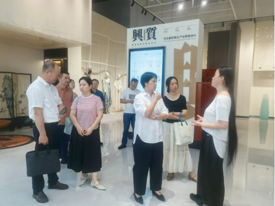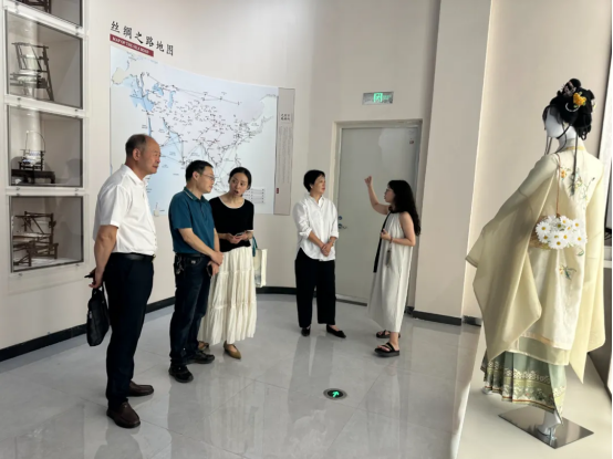 王玉娟一行參觀考察絲綢文化產(chǎn)業(yè)園及文化產(chǎn)業(yè)空間等內(nèi)容,重點(diǎn)了解產(chǎn)業(yè)園區(qū)與浙江理工大學(xué)湖州研究院共建“絲綢+”數(shù)字平臺情況。