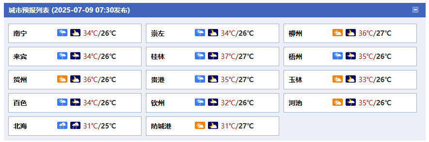 廣西:今天桂北桂東高溫持續(xù) 桂西沿海雨勢明顯