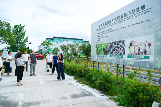 會前,參會人員現(xiàn)場參觀海寧市蠶桑龍頭企業(yè)——浙江雅云生態(tài)農(nóng)業(yè)有限公司的蠶桑生產(chǎn)示范基地。
