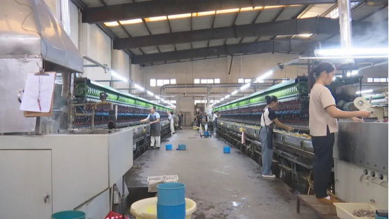 重慶市雙河絲綢有限公司董事長(zhǎng)—陳松奎:我們廠目前已經(jīng)有12條繅絲生產(chǎn)線滿負(fù)荷生產(chǎn),每年可以生產(chǎn)白廠絲200噸左右。