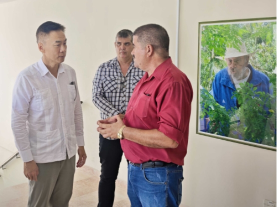 國際交流丨中國駐古巴大使華昕考察中古蠶??萍己献黜椖?/div>