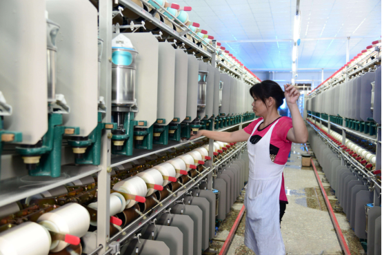 位于宜州城西工業(yè)園區(qū)的廣西嘉聯(lián)絲綢股份有限公司生產(chǎn)車間,工人在忙碌地工作