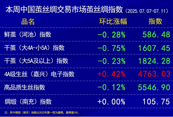 高品質(zhì)生絲價格指數(shù)延續(xù)強勢震蕩格局,市場成交活躍度一般。