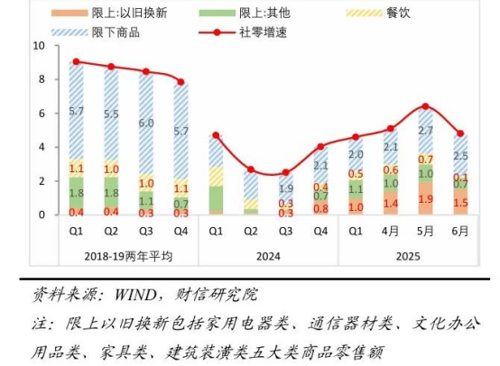 往后看,預(yù)計(jì)下半年社零增速或繼續(xù)放緩。一是受高基數(shù)和乘數(shù)效用邊際趨弱的拖累,下半年以舊換新政策的拉動作用大概率減弱。二是隨著內(nèi)外需放緩壓力加大,居民就業(yè)或明顯承壓,“就業(yè)-收入-消費(fèi)”循環(huán)待暢通,將制約消費(fèi)能力改善空間。