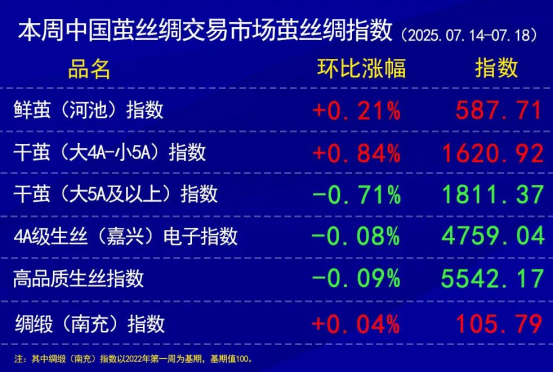 本周,生絲電子指數(shù)累計(jì)微跌0.08%。