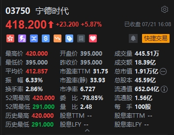 寧德時代港股再創(chuàng)歷史新高。小摩近期研報指出,公司近月的產(chǎn)能增長是行業(yè)最高,雖然顧問意見反映7月中的產(chǎn)能略有下降,但整體增長仍然穩(wěn)健且高過預期。另外,該行預期次季盈利將勝預期,料銷量為140至150吉瓦時,凈利潤同比升25至30%,到155億至160億元人民幣,單位經(jīng)濟與首季相若。高盛近期表示,預計寧德時代于今年第二季收入將取得1047億人民幣,純利將達到156億人民幣,認為其估值具有吸引力,維持對寧德時代A股和港股的“買入”評級。